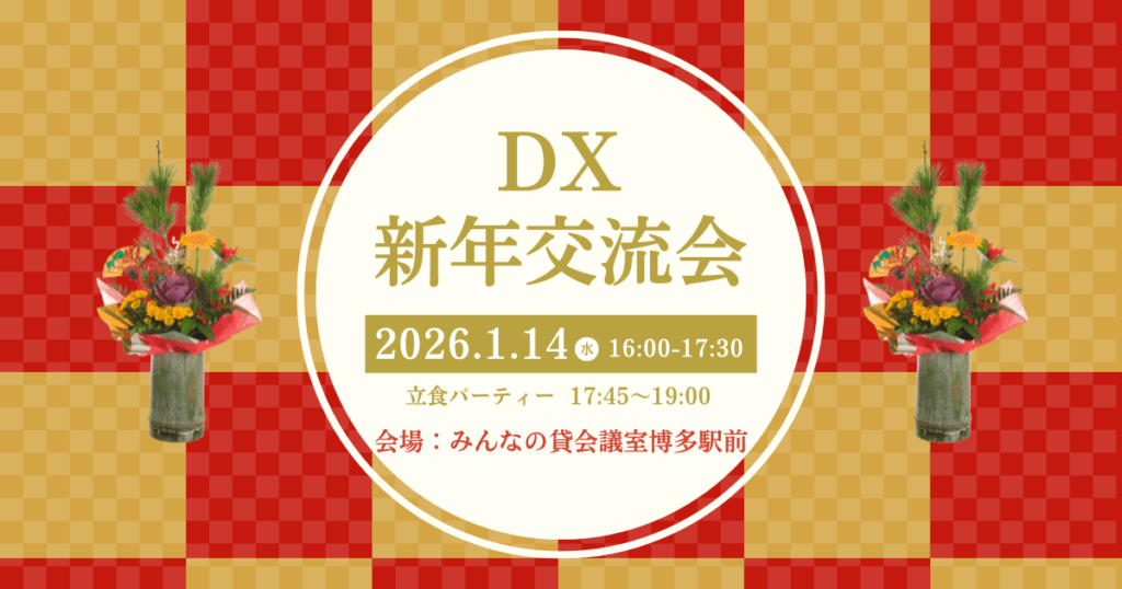 2026年初となる交流会は、新年会を兼ねて福岡DXコミュニティ会長と地域のソリューション企業のDXの推進者などにお話いただき、イベント後に立食パーティーを開催いたします!